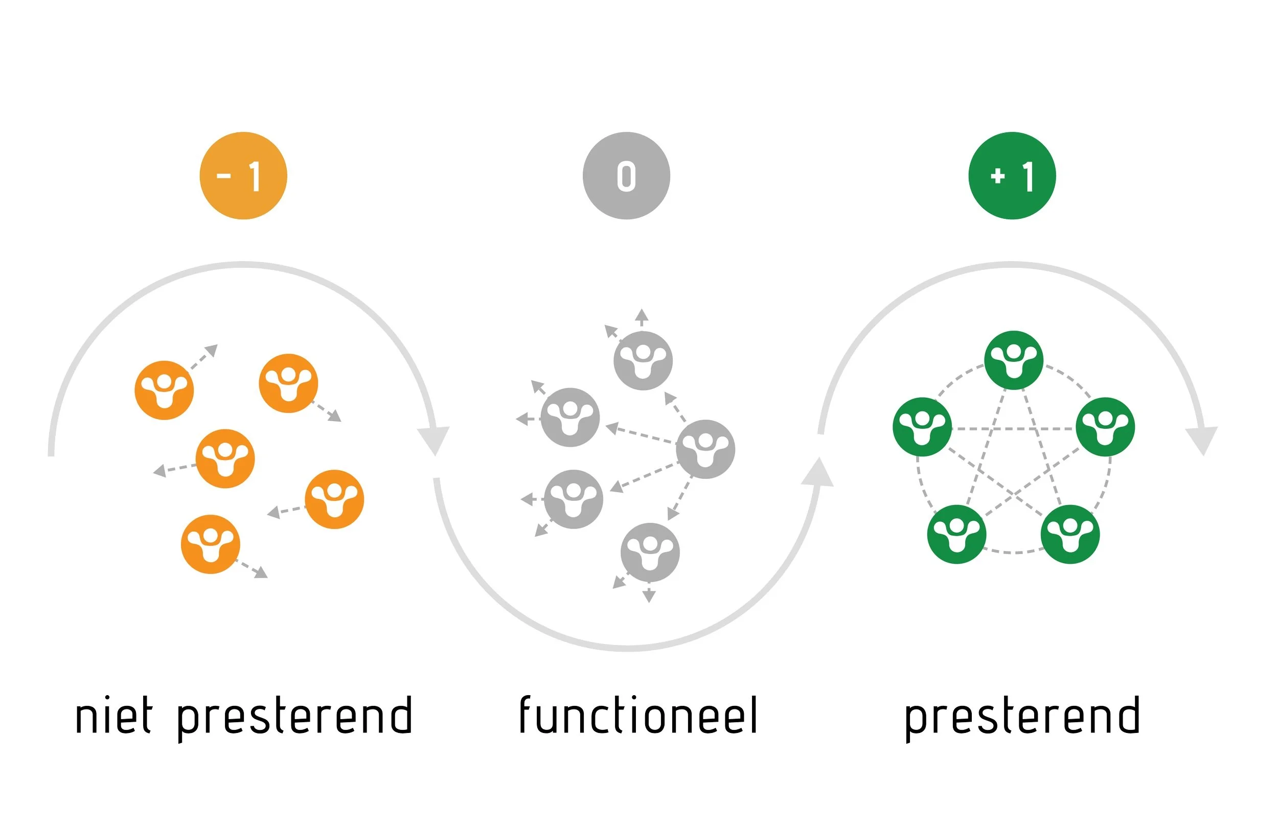 In de prestatiepsychologie kunnen teams worden ingedeeld in drie categorieën: het niet presterende team, het functionerende team, en het presterende team. Deze indeling helpt ons beter te begrijpen waar een team staat en wat er nodig is om het naar een hoger niveau te tillen.