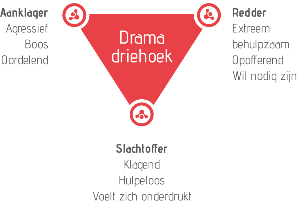 De Dramadriehoek is een dynamisch model. Het is een model van disfunctionele sociale interacties en illustreert een machtsspel dat drie rollen omvat: slachtoffer, redder en aanklager, elke rol vertegenwoordigt een veel voorkomende en ineffectieve reactie op conflicten. Het model is dynamisch, mensen kunnen tijdens een gesprek vanuit de verschillende rollen spreken.